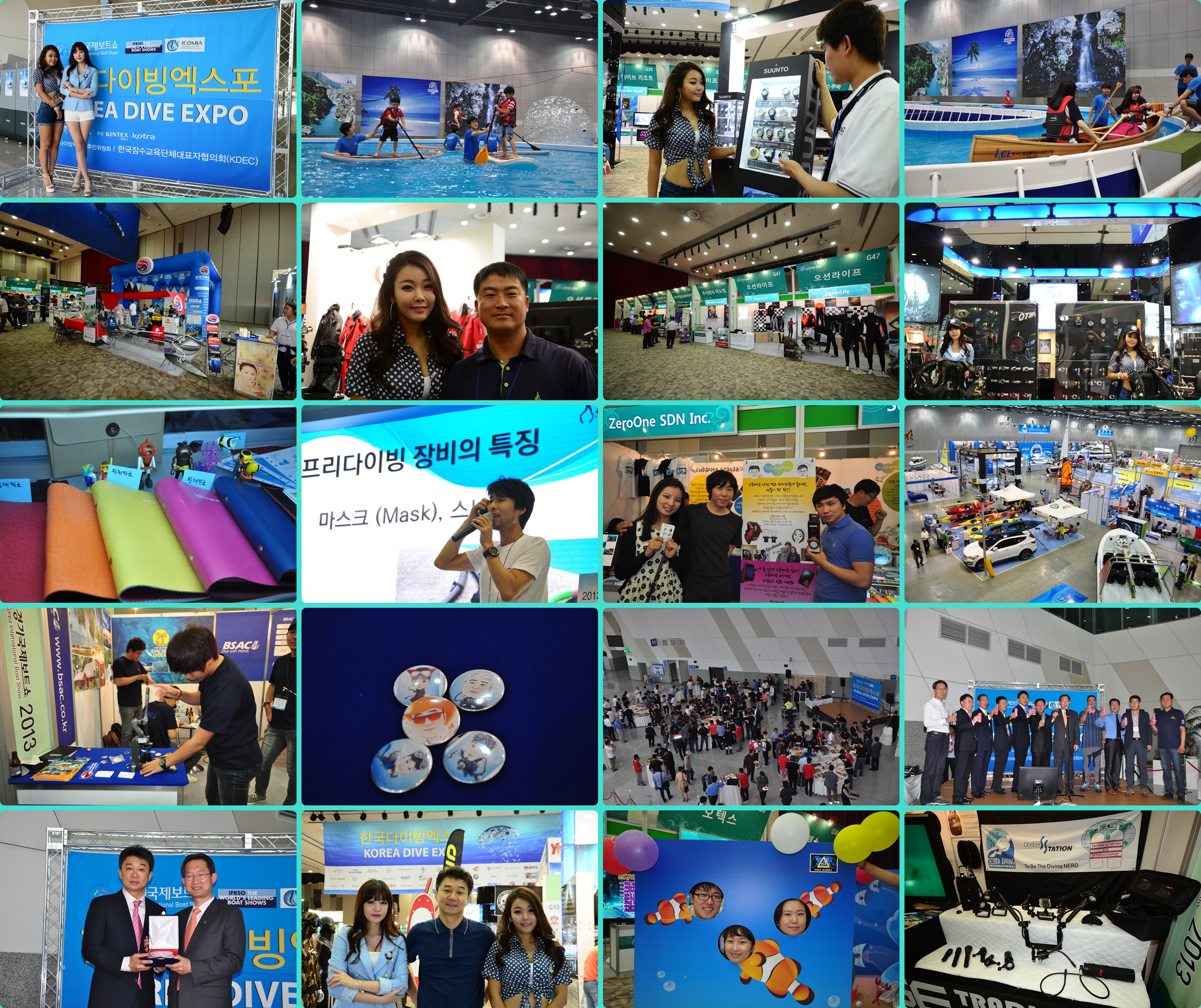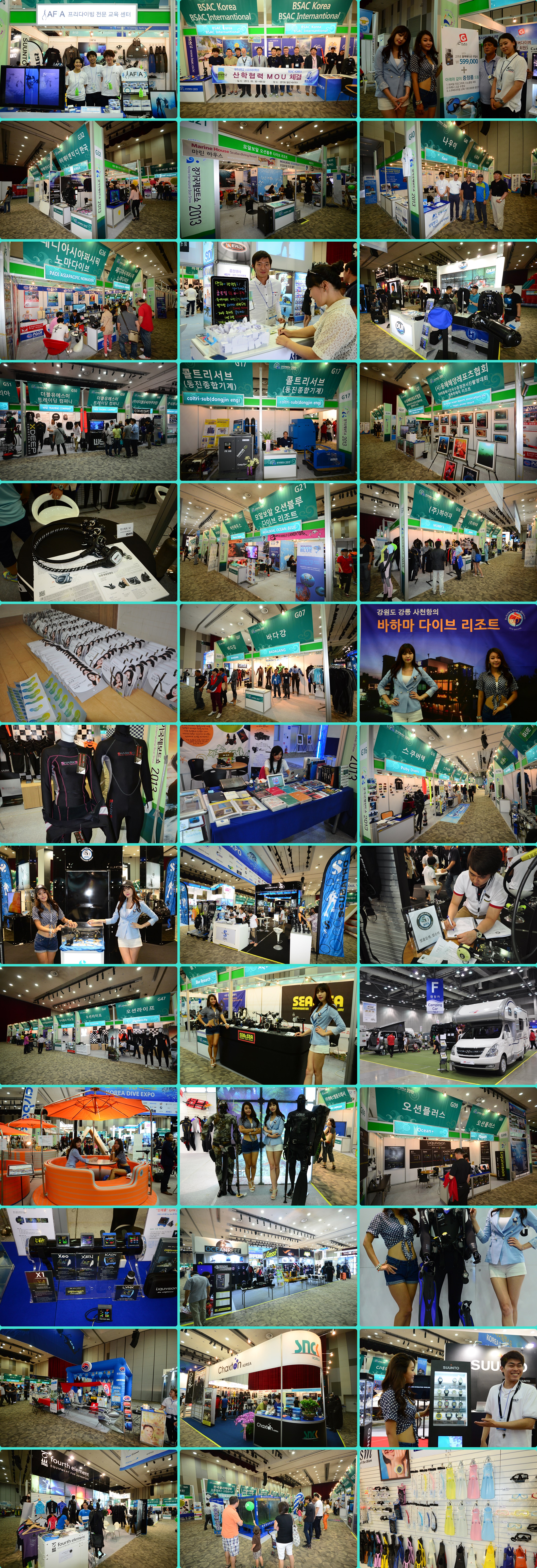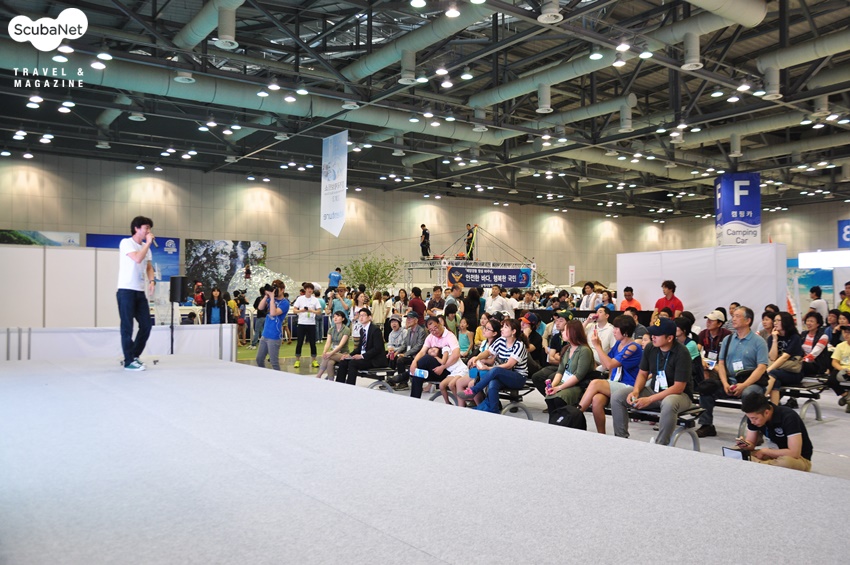 전시회 참가 업체들의 이모저모전시회 참가업체들은 전시효과를 높이기 위해 공동전시와 세미나, 공동이벤트 등을 진행하여 관람객들의 주목을 끌었다. 전시장 입구의 SDI/TDI/ERDI의 경우 본부는 전체 전시기획을 맡고, 소속 트레이너들이 리조트와 센터를 홍보하기 위해 참가했다. 적극적인 홍보를 위해 마지막 날에는 함께 경품이벤트를 진행하여 관람객들을 한자리에 불러모았다.