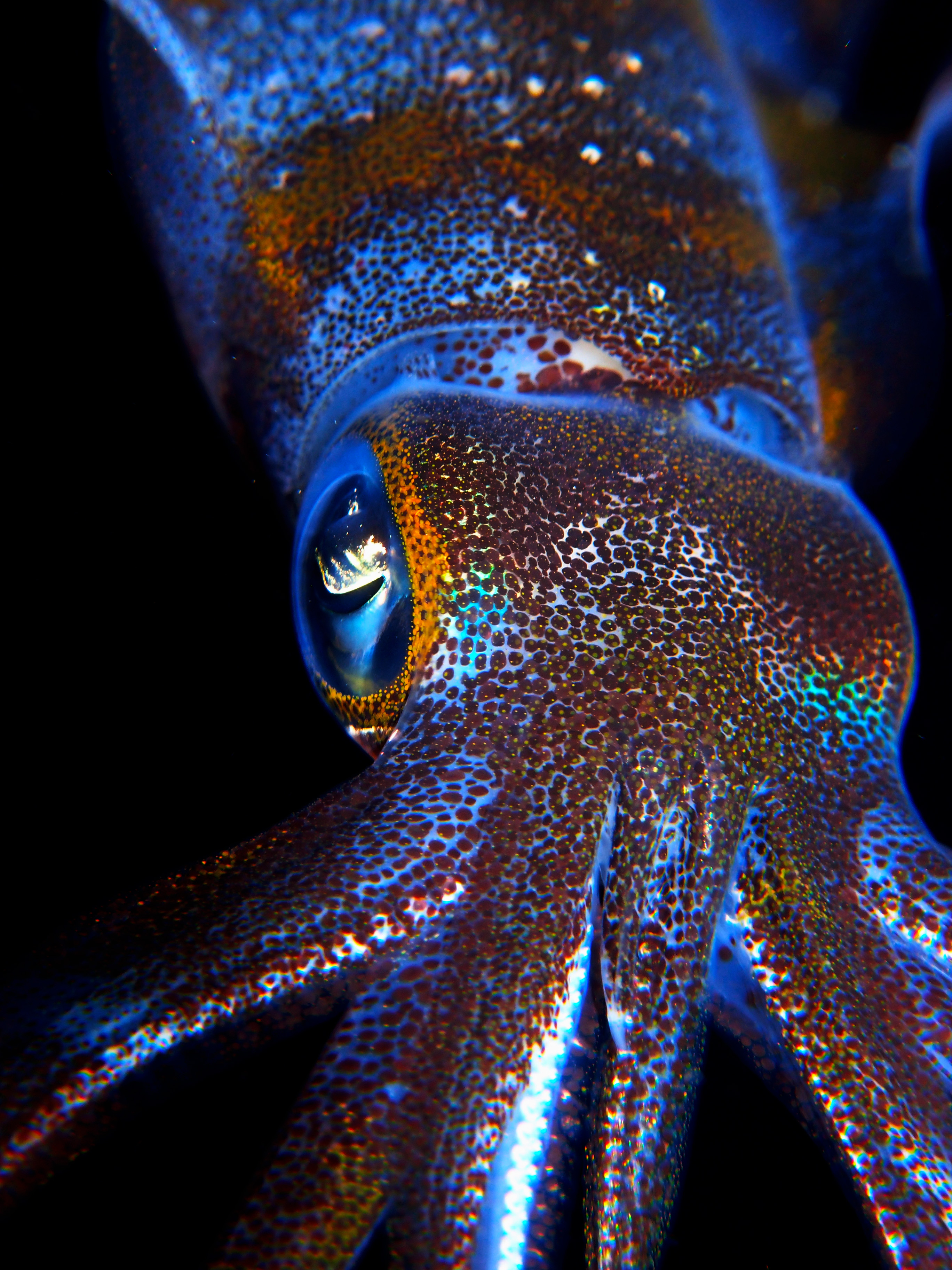 나이트는 바수라 포인트에서 진행했으며 크랩류와 스쾃랍스터, 할리퀸스위트립스, 광대새우와 씨모스, 넙치, 스톤피쉬 등을 촬영했다. 이제 잔압을 보고 출수 준비를 하려고 하는데 아 눈앞에 모또띠가 있었다! 그렇게도 보고 싶었던 녀석인데 아무 생각 없이 눈앞에 나타나다니! 얼른 촬영을 하고 있는데 탐침봉 탱크 뱅잉 소리가 엄청나게 들린다. 고개를 들자 약 4m 전방에 오징어 3마리가 형광 빛을 발하면서 UFO처럼 캄캄한 허공에 떠있었다. 몇 초를 멍하니 보내고 얼른 정신을 차려 카메라 세팅을 바꾸며 다가갔다. 코앞까지 다가가도 도망가지 않고 유유히 유영하고 있다. 푸른 형광빛이 LED처럼 실시간으로 흐르며 반짝인다. 이런 순간은 정말 다이버에게 행복한 시간 그 자체가 아닐까? 황홀한 시간이 지나고 어느덧 출수를 한다. 달과 함께하는 나이트의 출수는 언제나 낭만적이다.