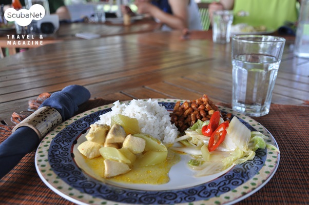 식사인도네시아식 식사가 인원에 맞게 뷔페 형식으로 제공되는데 인근에 여행자를 위한 식당이 없어 모든 식사를 리조트 안에서 해결하게 된다. 식사는 쌀밥과 서너가지 반찬으로 구성되는데 대체로 한국 입맛에 잘 맞으며 깔끔하지만,식도락을 즐기는 다이버들에게는 실망스러울 수도 있다. 신혼 여행지로 발달된 승기기 비치(Senggigi beach)로 나가면 맛있는 레스토랑과 마사지 숍들이 즐비하지만 베롱가스 베이에서 편도 1시간 30분 정도가 소요되어 자주 나가기는 쉽지 않다.