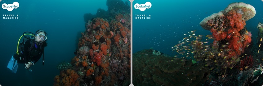 카테드랄 Cathedral50m 바닥에서부터 시작하는 피나클이 두 개의 봉우리로 솟아 있다. 이글레이 스쿨과 참치, 그레이트 바라쿠다를 만날 수 있는 곳이다. 또한 바다뱀을 수시로 만나게 되는데 여느 곳에서보다 크고 굵은 바다뱀을 마주하더라도 놀라지 말고 침착할 것블루 홀 Blue Hole수심 17m에 입구가 있는 커다란 돔 형태의 케이번으로 웅장한 지형이 장관을 이룬다. 케이번 벽에는 둥글게 말린 회초리 산호가 산재해 있다. 케이번 안을 구경하다 상승하여 10m 수심의 반대쪽 입구로 돌아나오게 된다. 시즌에 따라 다르지만 잭피시, 스위트 립스, 서전 피시 등을 만날 수 있다.