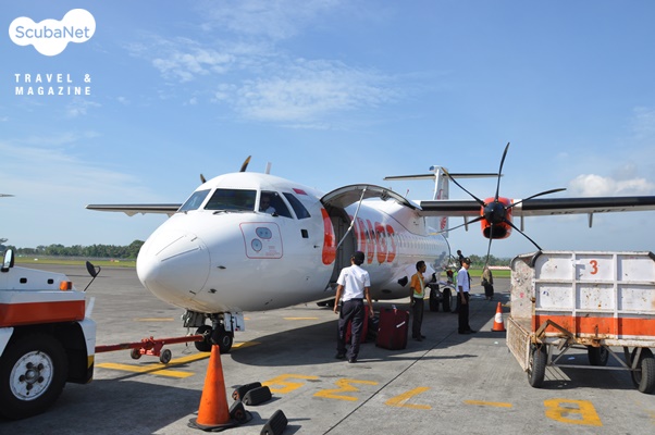발리에서 롬복으로발리 덴파사 공항에서 롬복 마타람 공항까지는 인도네시아 국내선 항공편으로 약 40분이 소요된다. 인도네시아 국내 항공사는 라이온에어, 트랜스누사, 메르빠띠 에어라인 등이 있다. 라이온에어와 메르빠띠 에어라인의 경우 홈페이지를 통한 온라인 항공권 구입이 가능하고 트랜스누사의 경우 온라인 구입이 불가능하여 다이브숍이나 여행사에 구매대행을 요청해야 한다.