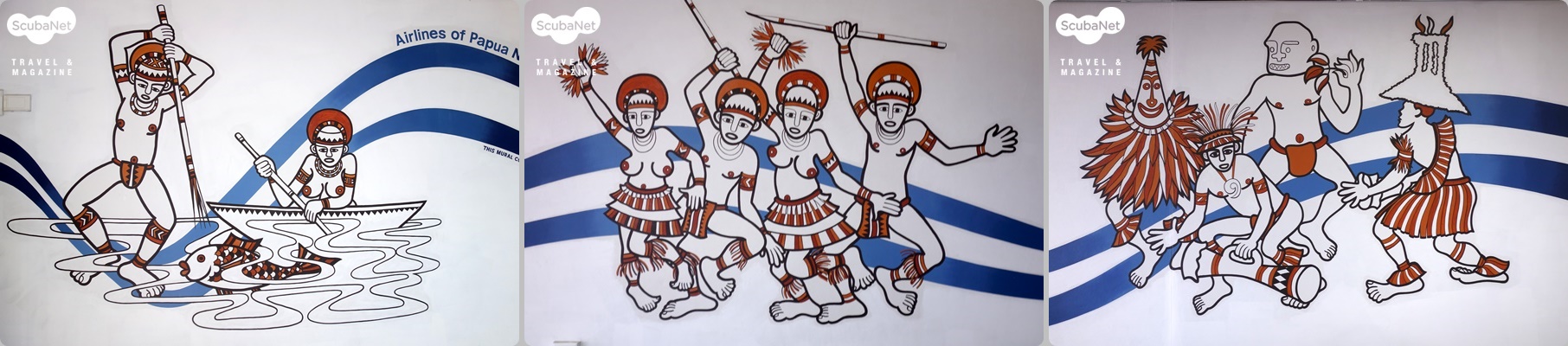 포트모레스비 국제선 청사에서 나와 조금만 걸어가면 국내선 청사가 있다. 전반적으로 깔끔한 공항에서 알로타우까지 수속을 마치고 대합실에서 마지막 탑승을 기다린다. 여기도 하얀 벽면에는 PNG 원주민의 생활상을 보여주는 재미있는 그림이 그려져 있다.