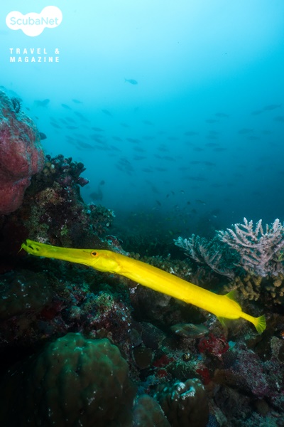 이른 새벽부터 보트는 항해를 하여 새로운 장소에 정박을 하였다. 기대가 되는 포인트이지만 물색은 별로다. 하강하여 급경사의 슬로프를 따라 내려가니 능선을 따라 파란 몸에 노란색 꼬리의 퓨질리어 무리가 엄청나다. 한 앵글에 잡고 싶었지만 시야가 받쳐주지 않는다. 물색도 도저히 나오지 않는다. 두 번의 다이빙에 많은 것을 보았고, 셔터도 많이 눌렀지만 아쉬움이 많이 남는다.