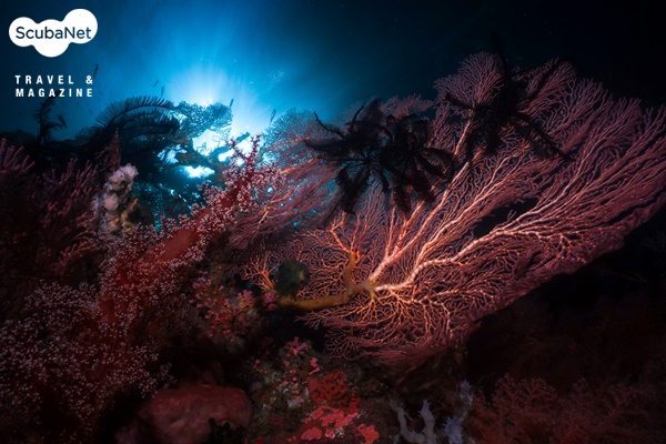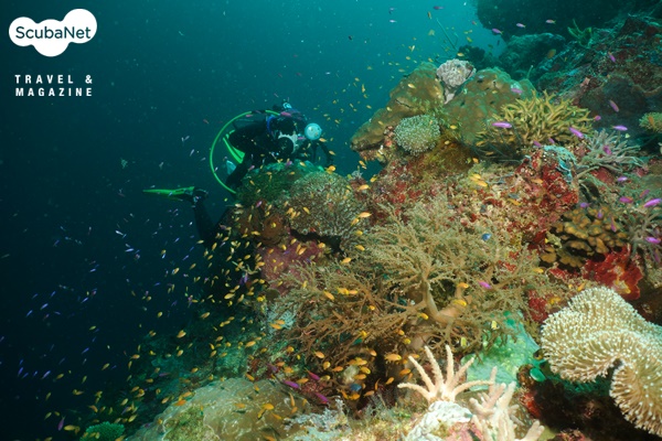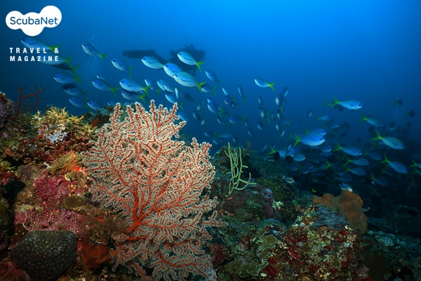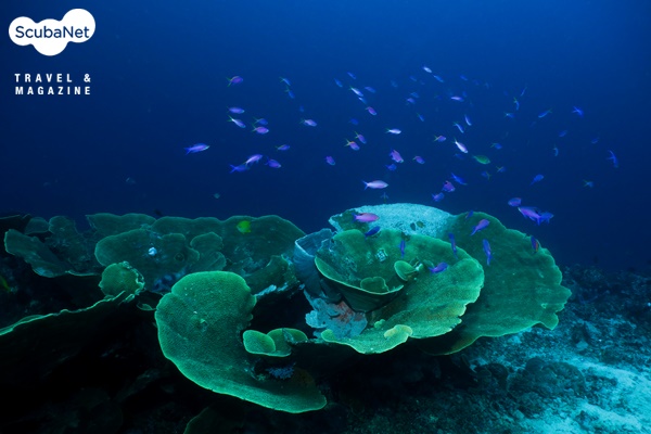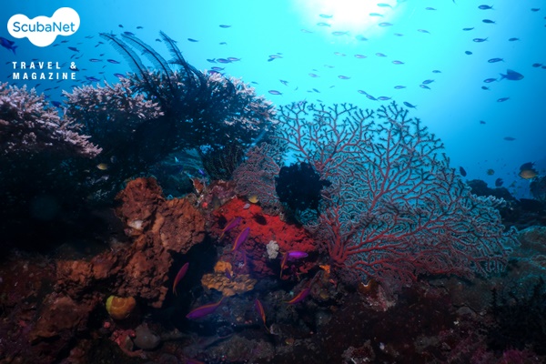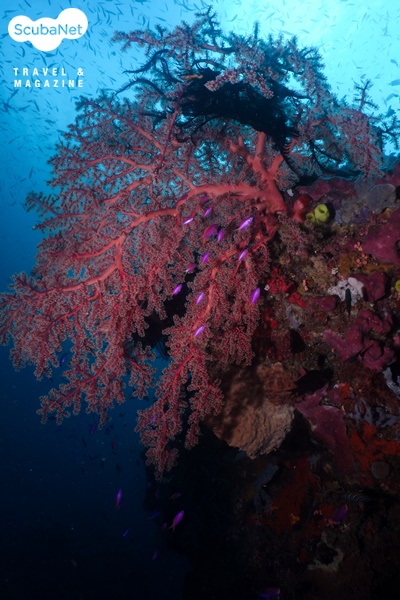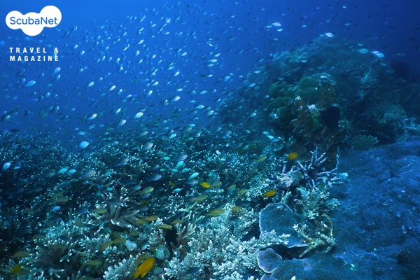 스쿨링이 형성된다. 얕은 수심에는 말미잘 군락 속의 아네모네 피시와 녹색의 산호와 안티아스 무리가 춤을 추고 있다.
