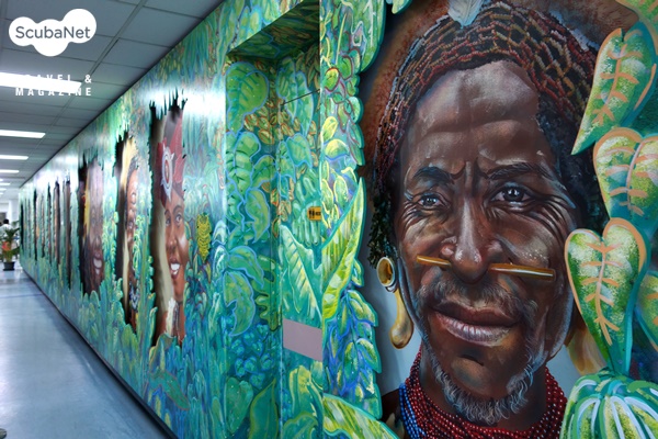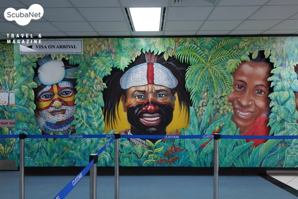공항에서의 기다림, 비행, 기다림, 비행, 기다림, 비행. 어렵게 도착한 PNG의 첫인상은 산뜻했다. 포모레스비 공항의 입국신고 공간에 그려진 벽화는 그 어느 공항서도 보지 못한 흥미로운 그림이었다. 벽면 가득히 원시의 숲과 원주민의 밝고 재미있는 모습이 그려져 있었다. PNG에 대한 불안한 마음을 한 번에 날려버릴 수 있게 해주는 멋진 웰컴 메시지였다.
