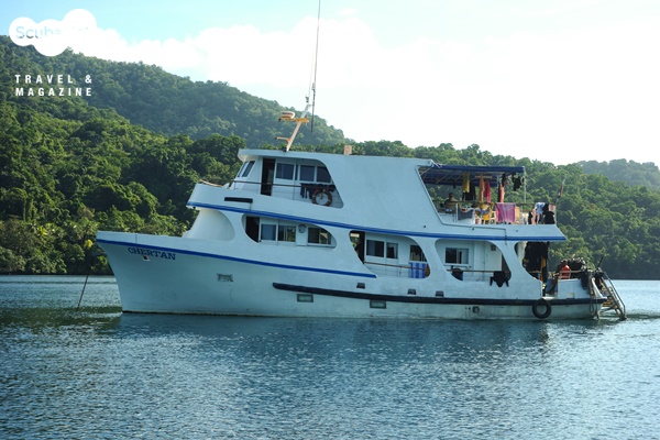 드디어 우리에게 PNG의 바다를 안내해줄 리브어보드 MV Chertan에 탑승하였다. 그리 크지는 않지만 효과적인 공간배치로 짜임새가 있는 보트다. 메인 갑판 중앙에 응접실과 주방, 식당이 같이 있으며, 중앙에 있는 계단으로 아래층으로 내려가면 객실이 나란히 줄지어 있다. 메인 갑판 뒤쪽에 다이빙 스테이션이 위치하고 있으며, 12명이 사용할 공기통이 준비되어 있고 후미에는 수면 높이의 데크와 양쪽으로 편안한 사다리가 준비되어 있다. 입수는 후미의 좌우현에서 할 수 있으며, 7~8명이 압승할 수 있는 딩기가 준비되어 있다. 상갑판에는 선장실과 다이버들이 주로 시간을 보낼 데크가 널찍하다. 가운데 큰 테이블이 있고 앞쪽에는 카메라를 세팅할 수 있도록 테이블이 준비되어 있다. 선장실 앞에는 태닝은 어려운 자그마한 선데크가 있다.