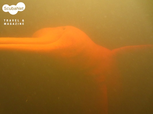 안젤리타의 황화수소 층에서는 계란 썩는 듯한 유황 냄새도 나고, 아지랑이가 피어나는 것처럼 시야가 굴절돼 보였다. 황화수소 층을 통과해 그 아래의 바닷물 층에 도달하고 나니 상부에서 내려오는 빛이 구름 같은 황화수소 층에 모두 차단되어 칠흑같이 어두웠다. 플래시로 주위를 비춰보니 나뭇가지도 많았고, 영화에 나오는 밤중의 공동묘지같이 으스스했다.