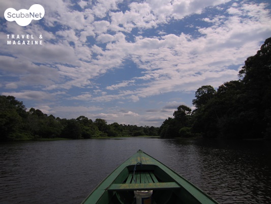 아마존강을 탐험하는 보트위에서