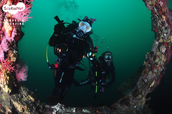 삼각어초 포인트에서 부채뿔홍산호 사이의 이은혜 다이버