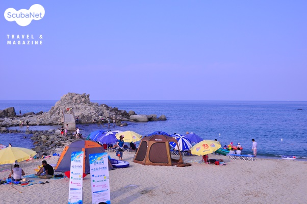 체험다이빙을 진행한 사천 비치의 풍경 사천에 도착한 시각은 새벽 1시쯤. 다소 늦은 시각이지만 즐거운 마음으로 맥주 한 잔을 하며 서로 친해지는 시간을 가졌다. 가족들, 친구들과 함께 온 사람들도 있었지만 그렇지 않은 사람들이 더 많아보였다. 처음 보는 사람들도 즐거운 수다로 어색함을 날려버리고 다음 날부터 함께할 즐거운 다이빙에 대한 기대를 키워나갔다.