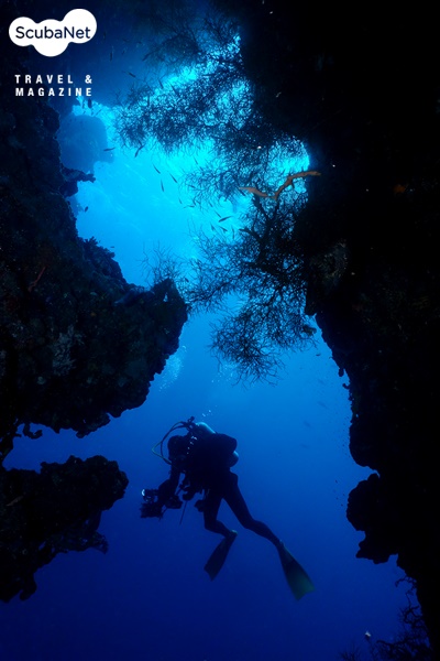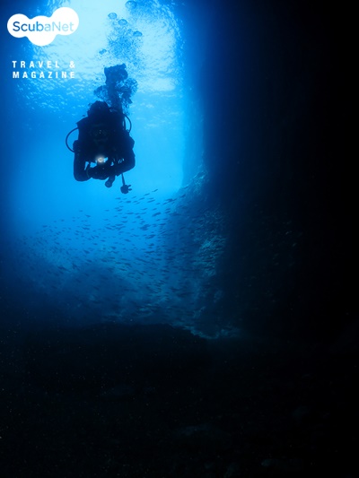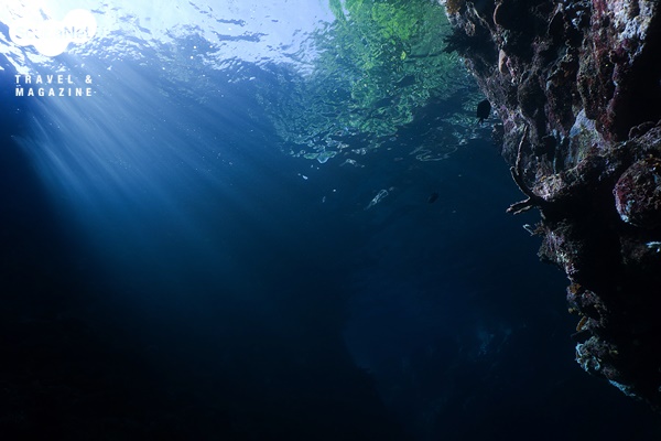또한 수중의 협곡이나 얕은 동굴, 블루홀과 같이 지형이 멋진 곳에서도 자연광 촬영의 효과를 볼 수 있습니다. 어두운 지형과 맑은 물과 햇살은 멋지게 어우러집니다.