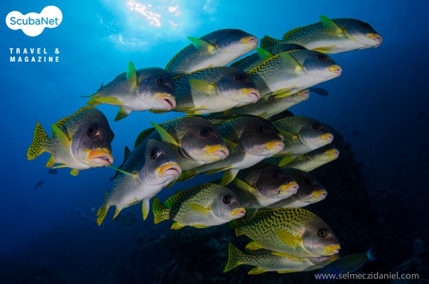 고원 위에서 시간을 보내고 있을 때 그레이 상어들이 전방향에서 우리를 애워싸기 시작했다. 그 와중에도 대형 그루퍼들은 상어들을 아랑곳하지 않고 용감하게 자신들의 길을 가고 있었다. 이런 스릴있는 만남을 뒤로 하고 고원의 북쪽을 향해 유영하기 시작했는데 자이언트 바라쿠다가 스쿨링을 하며 앞을 가로질러 갔다. 큰 녀석들은 거의 1.5m까지 달했고, 무리는 80~90마리는 되었다.