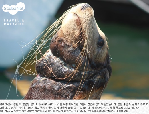 해양동물들을 직접 만나는 다이버들이 나서야 할 때다이버들은 수중에서 직접 해양동물들과 만나기 때문에 해양환경 문제에 보다 민감한 편이다. 폐그물이나 폐통발에 걸려서 의미 없는 죽음을 맞는 물고기들과 게, 문어 등을 보기도 하고, 바다거북의 먹이가 되는 해파리와 흡사한 비닐봉투가 수중에 떠다니는 모습을 보기도 한다.