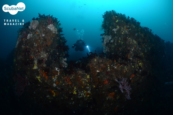 이 봉우리에서 저 봉우리로 옮겨 다니면서 권순호 강사를 모델로 사진을 촬영했는데 금방 20분이 흘러 상승해야 할 시간이 되었다. 정말 그랑블루에서 주인공이 줄을 놓고 돌고래를 쫓아갈 때의 심정이 이랬을까? 올라가고 싶지 않다는 생각이 들 정도로 정말 환상적인 곳이었다. 보트에 올라오니 날은 이미 어둑했지만 다이버들은 모두 감탄해마지 않았다. 권순호 강사는 50cm가 넘는 괴도라치를 보았다며 즐거워했다.