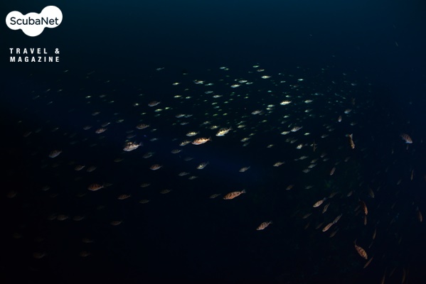 엄청난 무리의 볼볼락들이 끊임없이 지나가고 있다