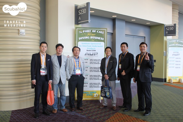 미국 다이빙 시장에서 절대적 우위를 점하고 있는 AUP는 DS 2013 회장 안에서 가장 눈에 띄는 부스였습니다. 참가 업체 중 최다 부스로 구성되어 TUSA와 같이 출입구 바로 앞 정면에 위치하고 있어 많은 인원이 방문한 업체 중 하나였습니다.