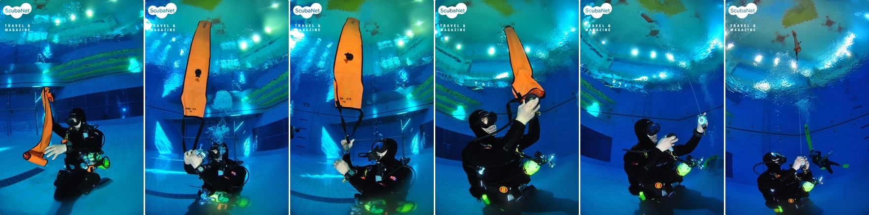 부풀리기수면에서 SMB를 부풀릴 때는 말려있는 것을 풀어서 옥토퍼스 등을 이용해서 공기를 넣어주면 된다. DSMB를 부풀릴 때는 약간의 요령이 필요하긴 하지만 어렵지는 않다. SMB를 풀어서 장비에 걸리지 않게 하고, 수면으로 자유롭게 올라갈 수 있도록 위치를 잡아준다. 옥토퍼스 등을 이용해서 SMB를 부풀린다. SMB가 수면에 올라가 있는 동안 연결된 스풀이나 릴 또는 라인을 잡고 있는다.