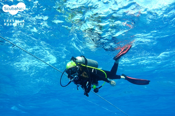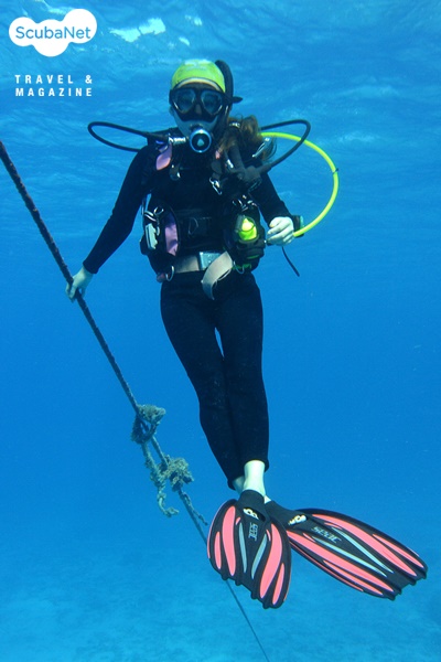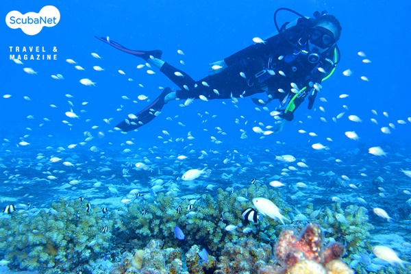로 촬영하였다, 부유물이 별로 없는 맑은 물이라 다이버의 피부색을 살리기 위하여 내