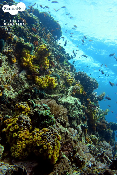 산호와 물고기의 색을 살리기 위하여 내장 스트로브로 촬영한 사진.