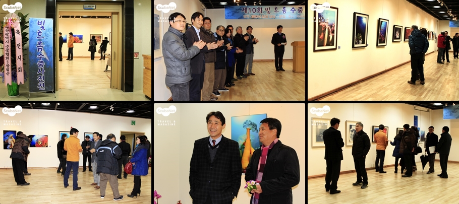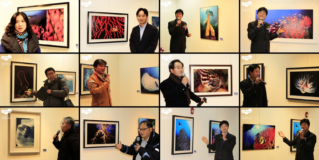 수중사진과 다이빙 계에서 활약하는 많은 다이버들은 물론 육상사진 모임들과 단체에서 많은 분들이 전시장을 방문하였는데 사회에서 저마다 다른 직업과 직책으로 활동하지만 이날만큼은 모두 바다를 사랑하고 수중사진을 사랑하는 마음이 하나가 되어 사진과 바다에 대한 열띤 토론의 장을 만들어 주었습니다.