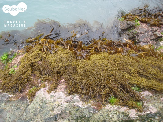 갈조류(Brown algae, Phaeophyta)해조류는 식물체 자체가 가지고 있는 색소체에 의해 녹조류, 갈조류, 홍조류로 나누어 진다. 대부분의 해조류는 여러분들이 육안으로 보이는 색깔로 녹조류, 갈조류 홍조류를 구분을 할 수 있다.그러나 일부 홍조류 중에는 육안으로 보이는 색깔이 홍색을 띠지 않아 갈조류로 오해하는 경우가 종종 있다. 대표적인 예로 우리가 먹는 김을 들 수 있다. 다이버를 포함하는 일반인들이 보는 김은 대부분 건조 된 것을 보기 때문에 검정색에 가까운 색을 띠고 있다.그러나 암반에 붙어있는 김을 채취하여 보면 짙고 엷음의 차이는 가지지만 보라색을 띠고 있다.이들 식물체가 건조되면서 검정색에 가까운 색으로 변하게 되는 것이다.