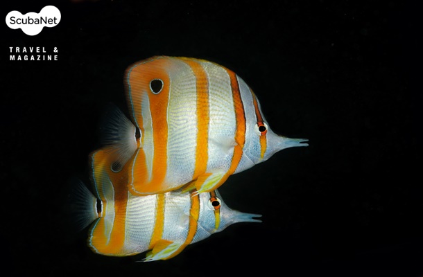 나비고기 한 쌍물고기는 측면의 무늬와 숨겨진 지느러미 등이 모두 펼쳐진 상태에서 촬영하는 것이 물고기 자체의 아름다움을 가장 잘 표현하는 것이다. 한 쌍의 나비고기가 마치 그림자처럼 붙어 다니는 것을 표현하기 위해서 그런 느낌이 드는 순간까지 계속 관찰하고 따라 다니면서 얻은 사진이다. 물고기들의 행동과 생태에 대한 이해를 갖고 끈기 있게 관찰하면 그 만큼 더 좋은 사진을 얻을 수 있다.