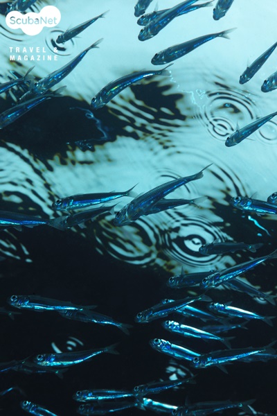 멸치 무리와 빗방울다이빙을 마치고 상승하는데 수면에서 멸치무리를 만났고, 마친 빗방울이 떨어지고 있었다. 노출보정을 하여 적정보다 약간 어두운 느낌을 주니 비가 오는 분위기를 제대로 살릴 수 있었다.
