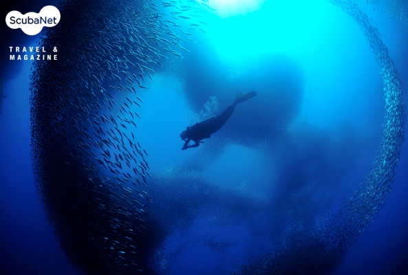 정어리 무리와 다이버필리핀 모알보알의 페스카도르 섬에 엄청나게 많은 정어리들이 모여있을 때 촬영한 것이다. 정어리 무리에게 밝은 라이트를 비추면 정어리들이 라이트가 비치는 곳을 피해 움직이면서 전체 무리가 다양한 형상을 나타내게 되는데 이런 여러 가지 시도 끝에 정어리 무리의 형상이 이 사진과 같이 둥근 원형의 게이트를 만드는 경우도 있었고, 상어나 미키마우스 등을 닮은 모양을 이룬 사진도 얻었다. 물고기들의 특성에 대해 잘 관찰하다 보면 특별한 사진을 얻을 수 있을 것이다.