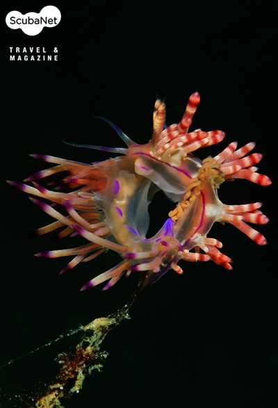 갯민숭달팽이들의 투쟁모랫바닥에 꽂혀있는 가느다란 나뭇가지 위에 알을 낳은 갯민숭달팽이가 한 마리를 발견하여 촬영하고 있는 중에 다른 종류의 갯민숭달팽이가 가지 끝으로 올라와서 처음의 갯민숭달팽이를 쫓아 내는 과정에서 만들어진 형상이다. 한가지 피사체를 오랫동안 관찰하는 과정에서 얻어진 사진이다.