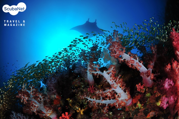 연산호, 카디널피쉬 그리고 만타연산호와 카디널피쉬만으로도 멋진 사진을 만들 수 있지만 만타까지 3박자를 맞추기는 쉽지 않다. 하지만 만타가 나타나는 지역이라 이 구도가 나오는 곳에서 자리를 잡고 만타가 지나갈 때를 기다렸다. 미얀마 블랙락에서는 만타가 5분에 한번씩 바위를 돌며 지나가는데 이 구도를 잡은 곳에서는 20분 넘도록 기다려서야 겨우 셔터찬스를 주었다. 작정을 하고 오래 기다려서 건진 사진이라 기분이 좋았다.