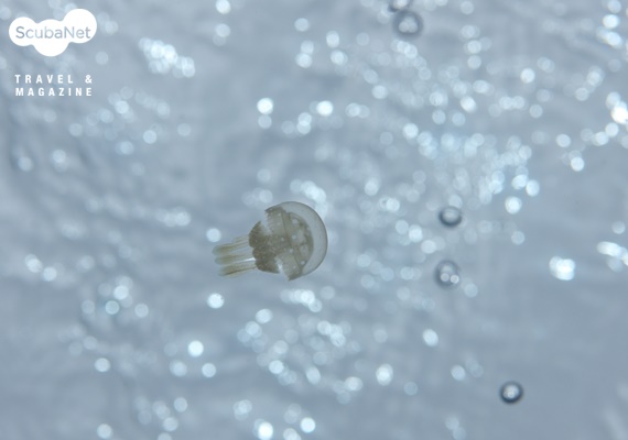 해파리 노출보정/적정노출수면 근처에서 촬영한 해파리 사진이다. 노출보정 사진은 적정 노출이 어둡게 나오게 될 것을 예측하여 +노출보정으로 촬영한 것이다. 그 결과 투명한 해파리와 수면의 보케 느낌을 얻을 수 있었다. 참고로 적정노출 사진은 훨씬 선명한 피사체를 얻을 수 있었지만 전체적으로 어두운 느낌이었다.