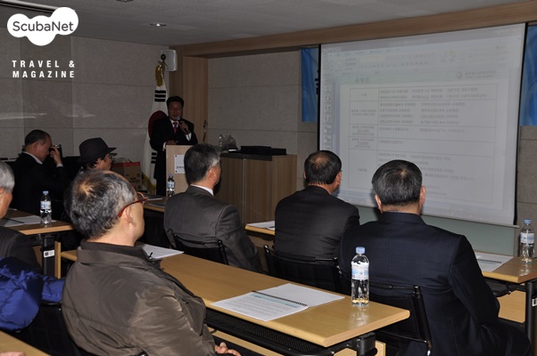 글로벌 스쿠버 교육원에 대해 설명하는 황대영 회장