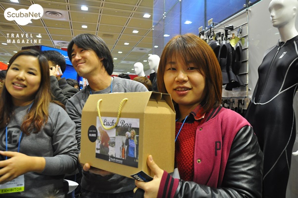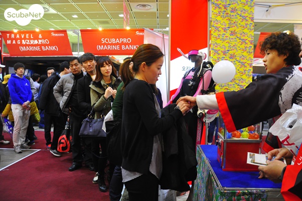 다이버들의 참여를 유도하는 이벤트들페이스북 등 SNS를 적극적으로 활용하는 업체들은 전시장을 찾아온 다이버들이 자신들의 부스에 직접 방문하도록 다양한 경품 이벤트를 통해 유도하였다. 페이스북 인증샷 이벤트는 이제 보편적인 것이 되었고, 그 외에도 많은 재기발할한 이벤트들이 개최되어 전시장을 찾는 다이버들을 즐겁게 해주었다. 이런 추세라면 내년에는 더욱 참가자들이 더욱 재미있고, 즐거워질 수 있는 전시회가 될 것이라 기대가 된다. 이번에 특히 다이버들의 관심을 끌었던 특색 있는 이벤트들에는 마린뱅크의 번호키 열기와 포스엘리먼트의 럭키박스, 해왕잠수의 전시부스 미니투어 등이 있었다.