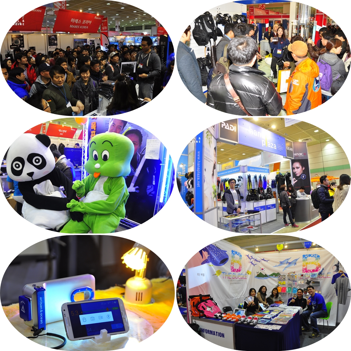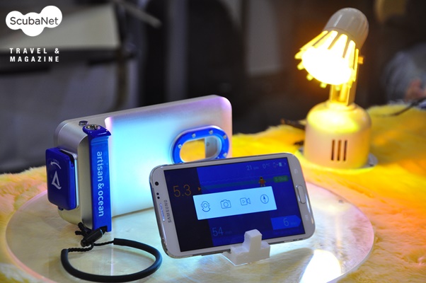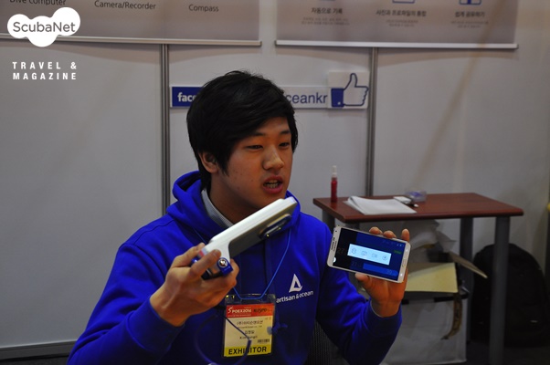 아티슨앤오션이번 전시회에서 가장 참신한 전시업체로 손꼽히는 아티슨앤오션은 대학생이 청년 창업으로 출발한 스타트업으로 안드로이드 스마트폰을 다이브 컴퓨터, 나침반, 로그북, 수중카메라로 사용할 수 있는 다이브로이드(Diveroid)라는 앱과 하우징을 개발하여 소개하고 있다.