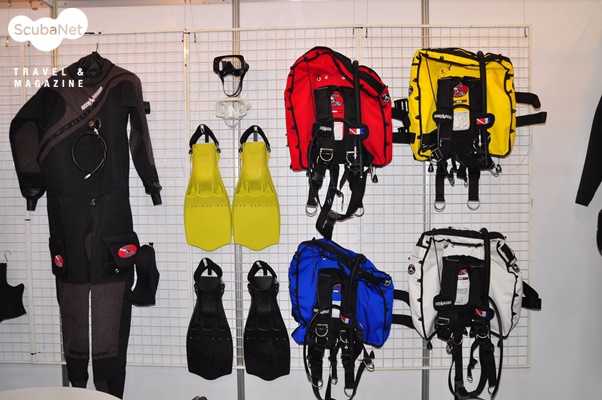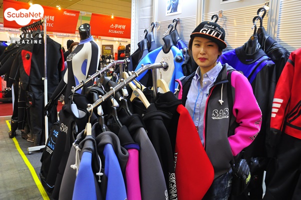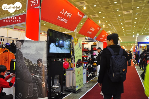 스쿠버텍스쿠버텍은 드라이슈트 브랜드 산티(SANTI)의 수입원이자, 쉐어워터(Shearwater) 다이브컴퓨터, 헨더선(Henderson) 왯슈트, 테크니컬 장비 DTD, EDG and HOG, 라이트몽키 라이트, 악세서리 이지컷 등과 내셔널지오그라픽 스킨장비의 수입원이다. 스쿠버텍은 이번 전시회에서는 SANTI 드라이슈트의 홍보에 집중하였는데 특히 새롭게 출시된 여성용 산티 드라이슈트(Ladies First)를 알리는데 최선을 다했다. SANTI의 부사장인 제이컵 스젤라고우스키(Jakub Szelagowski)가 직접 폴란드에서 신형 여성전용 드라이슈트와 내피를 가지고 방문하여 전시한 것이라 더욱 관심을 집중시켰다.