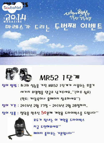 마레스 코리아이태리 브랜드 마레스를 전문으로 공급하는 ㈜대웅슈트는 전시회를 통해 다이버들에게 브랜드의 존재감을 알리고, 최근 적극적으로 홍보하고 있는 MR52 레귤레이터 1단계에 대해서 보다 자세하게 소개하는 기회로 삼았다. 특히 전시회 기간을 전후하여 마레스코리아 페이스북 페이지를 통한 이벤트를 진행하였는데 MR52 1단계가 사용되는 호흡기 3가지의 모델명을 맞춘 50명에게 개인용 드라이박스를 제공하기도 했다.