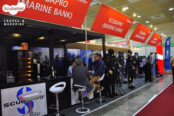 마린뱅크스쿠버프로 수입업체인 마린뱅크는 지난 해에 이어 올해도 전시장에 바를 만들어 다이버들이 자연스럽게 쉬면서 장비에 대한 질문을 하고, 거래업체들과 상담도 진행할 수 있도록 했다. 심각한 이야기의 비즈니스보다는 가볍게 서로의 안부를 묻고, 와인이나 커피를 한잔하면서 친밀감을 공유한다는 목적이 참가자들의 호감을 얻은 것으로 보인다. 이미 업계에 가지고 있는 브랜드 파워를 자신하기에 여유롭게 전시회를 즐기기로 한 것이다.