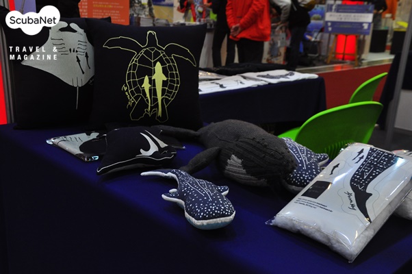 스쿠버넷과 함께 전시한 마린아트의 봉제인형과 쿠션, 티셔츠