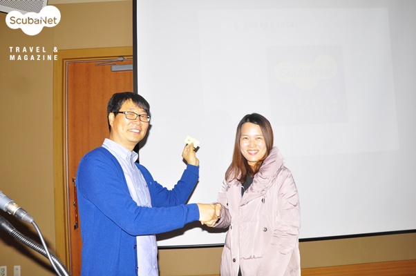세미나에서 경품으로 스쿠버넷 아닐라오 워크숍 투어권을 받은 박정은 다이버