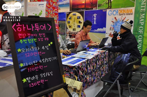 오키나와현 관광컨벤션 뷰로오키나오현 관광컨벤션 뷰로는 서울지사와 함께 오키나와의 본사 직원들이 직접 전시장에 나와 오키나와의 다이빙과 관광 상품들을 홍보하였다. 그리고 하나투어/스쿠버넷과 공동으로 오키나와 스쿠버 다이빙 예약을 받기도 했는데 많은 다이버들과 상담을 진행했다.