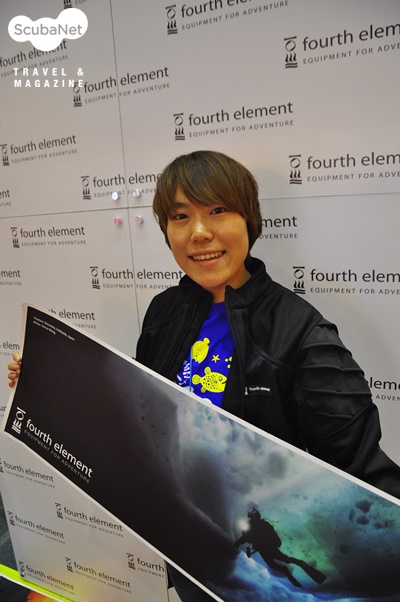 포스엘리먼트아거노트 드라이슈트와 프로테우스 슈트 등 다이빙 슈트 외에도 다이버들을 위한 의류, 드라이백 등 다양한 제품들을 제공하는 영국의 포스엘리먼트 브랜드를 국내에 제공하는 포스엘리먼트 코리아는 젊은 다이버들이 열정적으로 마케팅을 벌이며 새로운 트렌드를 만들어가고 있는 중이다. 전시회에서 가장 활동적으로 이벤트를 진행했는데 서두에서 소개했던 럭키백 이벤트는 물론이고, 드라이내피 겸 아우터로 사용할 수 있는 OZONE 제품을 내놓고 사이즈가 맞으면 50% 할인하여 판매하기도 했다. 또한 맘에 드는 티셔츠를 입어보고 현장에서 사진을 촬영하면 세계 유명 수중사진가들이 촬영한 멋진 포스터를 무료로 가져갈 수 있게 해주었다. 이런 행사를 통해서 포스엘리먼트 부스를 찾는 많은 다이버들이 제품들을 직접 착용해보고 사진을 촬영해 페이스북을 장식하였고, 멋지게 어울리는 제품들을 보고 구매욕구를 불러일으키며 포스엘리먼트를 보다 직접적으로 다이버들에게 알렸다. 이들의 적극적인 마케팅은 해외의 유명한 홍보이벤트들을 벤치마킹하여 진행된 것으로 그만큼 포스엘리먼트의 스태프들이 열정적이고, 적극적이라는 것을 반영하는 듯 했다. 조만간 포스엘리먼트가 대표적인 스쿠버다이빙 아웃도어 웨어로 자리잡을 가능성이 엿보였다.