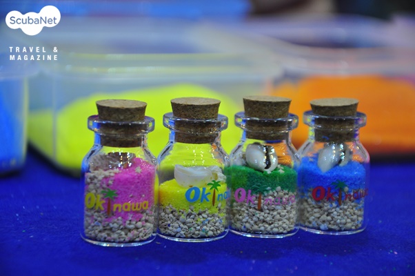 오키나와현에서는 전시회를 위해 기념 촬영 셋트와 행운볼 추첨기 등을 동원하였는데 매일 특정한 시간에 부스를 찾는 관람객들에게 행운볼에 들어있는 오키나와의 섬들 이름에 따라 여러 가지 기념품들을 제공해주었다. 색깔로 염색된 별 모래 캡슐과 마스크 스트랩, 오키나와 기념엽서 등이 제공되어 관람객들을 즐겁게 해주었다.