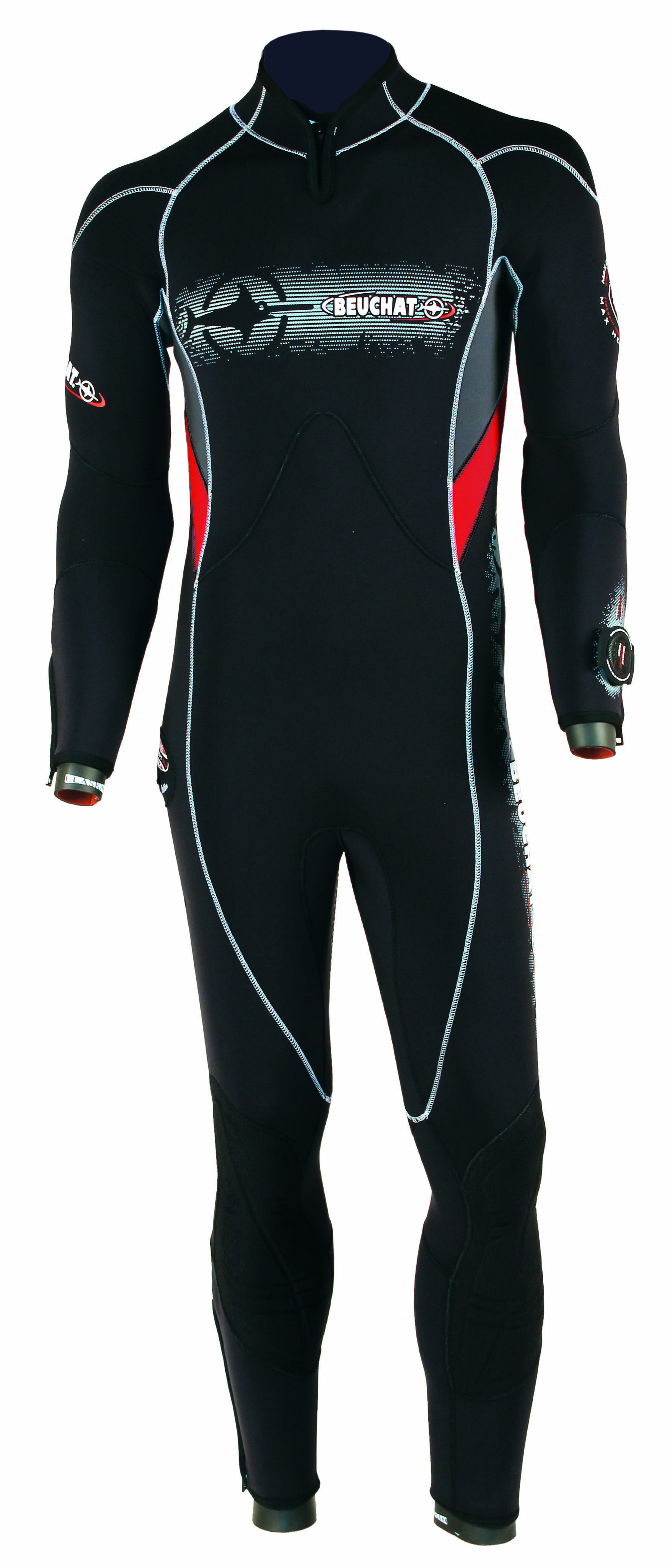 세미드라이슈트국내 다이빙에서 세미드라이슈트는 가장 폭넓게 활용할 수 있는 슈트이다. 수온이 높은 제주도에서는 연중 이용가능하며, 동해안에서도 겨울이나 봄철같이 수온이 낮은 시기를 제외하고는 적절하게 사용할 수 있다. 신축성이 매우 좋은 네오프렌 원단들이 사용된 세미드라이슈트는 착용하기도 편하고, 몸에 잘 밀착되어 보온성도 뛰어나다. 5mm에서 7mm까지 원단의 두께도 선택 가능하기에 추위에 대한 민감도에 따라 골라 입을 수 있다.