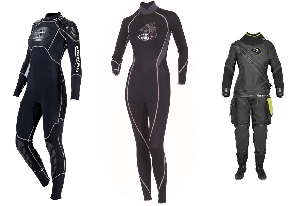 초창기 국내 다이빙업계에서는 처음 다이빙을 배우는 다이버들에게는 거의 무조건 5mm 투피스 슈트를 소개했다. 계절에 관계없이 추우면 투피스로, 더우면 파마존만 입어가면서 오직 슈트 한 벌로 다이빙을 해야 했기에 가장 적용범위가 넓은 것이었다. 그러나 최근에는 다이버들의 소비 수준도 높아졌기 때문에 어느 곳에서 어떤 다이빙을 할지에 따라서 강사들이 적절한 슈트를 소개하고 있다. 국내에서는 수온이 가장 높은 가을철 제주도를 제외하면 거의 대부분의 시기에 세미드라이슈트와 드라이슈트가 있어야 하고, 가을철 수온이 높을 때에야 겨우 5mm 투피스로 버틸 수 있을 것이다. 반면에 해외의 열대바다에서는 3mm 원피스에서 1mm 레쉬가드까지 매우 얇은 슈트를 사용하지만 경우에 따라서는 필리핀에서도 추위를 탈 수 있기 때문에 계절성을 고려해야 한다.