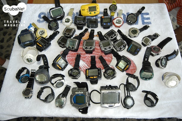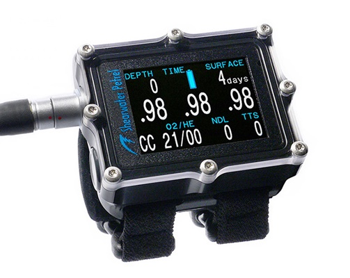 손목형인가 시계형인가?고압호스에 게이지 대용으로 연결되는 다이브 컴퓨터 대신 손목에 독립적으로 착용하는 다이브 컴퓨터를 손목형이라고 하고, 그 중에서도 일상 생활을 할 때에도 시계처럼 손목에 착용할 수 있는 사이즈의 다이브 컴퓨터를 시계형이라고 한다. 시계형 다이브 컴퓨터는 지속적으로 작동해야 하기 때문에 배터리 소모가 많지만 일상 생활에서 착용하기에 불편함이 없을 정도로 크기가 작고, 가벼우며, 디자인에서도 세련된 스타일이 많다. 다만 크기가 작기 때문에 제공되는 정보의 활자 크기도 작아서 노안이 있는 다이버들은 읽기가 어렵다는 단점도 있다. 그러나 다이브 컴퓨터를 고유의 감압정보 제공 기능에서 추가하여 패션으로도 활용하고 싶은 다이버라면 시계형 다이브 컴퓨터를 선택하는 것도 좋다. 특이한 것으로 백업용 다이브 컴퓨터인 오셔닉 BUD의 경우 그냥 BC의 D링에 걸어 놓고 있다가 필요한 경우에만 찾아볼 수 있게 한 것도 있다.