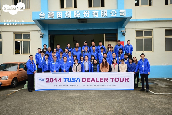 ㈜우정사/오션챌린져는 지난 3월 12일~15일 3박 4일 일정으로 딜러 20명과 스쿠버다이빙 매체 대표 3명을 초청하여 임직원까지 포함해서 30명의 인원으로 2014 TUSA 딜러 타이완 투어를 개최했다. ㈜우정사/오션챌린져는 지난 2009년부터 시작하여 매년 딜러들을 초청하여 타이완이나 일본의 투사 공장을 견학하고, 현지 다이빙전문점과 리조트를 방문하고 있는데 올해로 벌써 6년차가 되었다. 국내 다이빙업계에서 딜러투어를 진행한 곳들이 몇몇 있지만 6년간 한번도 빼먹지 않고 계속하고 있는 곳은 ㈜우정사/오션챌린져가 유일하다. 그만큼 TUSA 딜러투어가 주최측과 참가자들 모두에게 도움이 되는 의미 있는 행사이기 때문일 것이다.