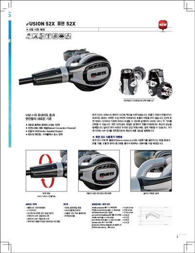 •찬물 다이빙 용으로 1, 2단계 모두 동결방지를 위한 열 교환기를 장착 (부샤 특허)