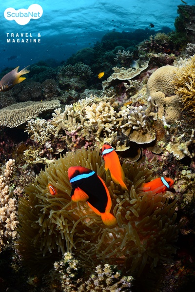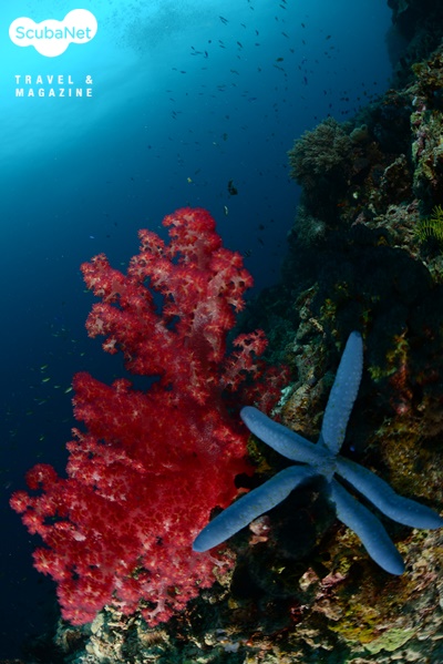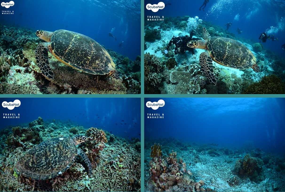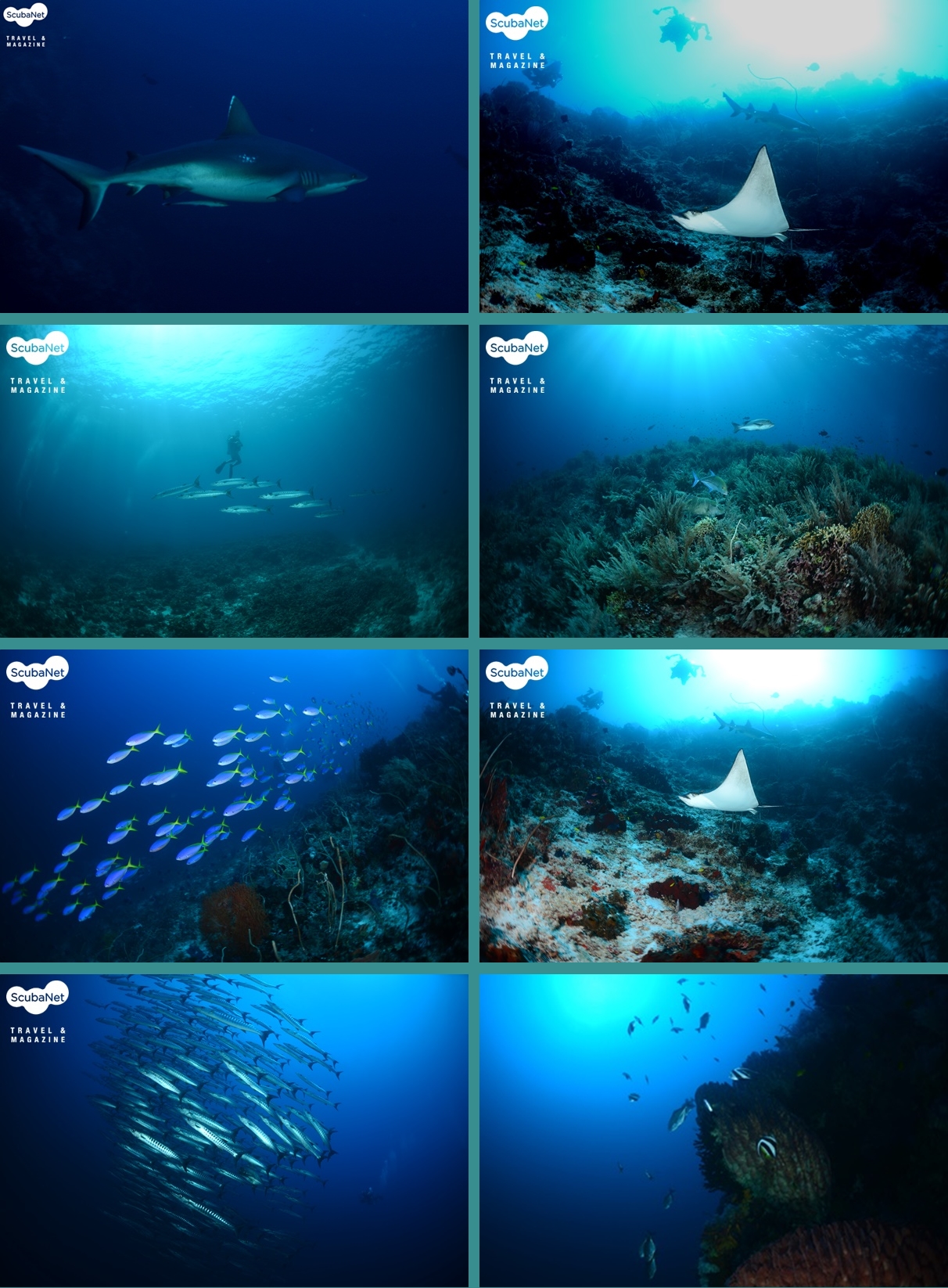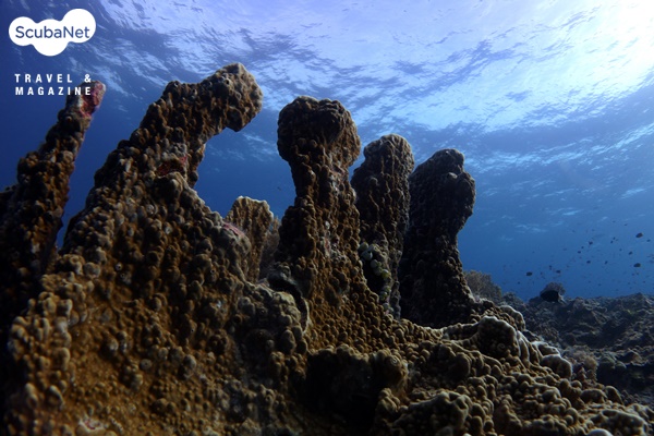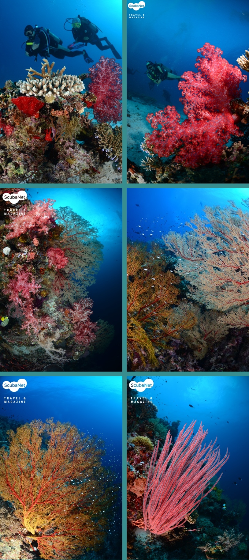 섬의 동쪽과 남쪽 포인트는 투바타하에서 볼 수 있는 월 다이빙과 비슷한 느낌으로 대형 부채산호들과 연산호들이 섞여있었고, 다양한 종류의 산호들이 군락을 이루고 있어서 광각사진을 촬영하기에 안성 맞춤이었다. 군데군데 오버행과 아치들이 있어서 심심하지 않았고 시야 또한 맑아져서 물색은 짙은 푸른 빛을 띠기 시작했다.