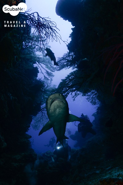노스 리이프의 다이빙은 샤크 에어포트(Shark Airport)에서 시작되었다. 지난 해 첫 다이빙에서 잭피쉬를 만났던 곳으로 기대를 안고 들어갔지만 잭피쉬 무리는 만나지 못했고, 시야 또한 기대만큼 좋지는 않았다. 다만 월을 가득 채우고 있는 다양한 종류의 부채산호들과 화려한 색상의 연산호들 그리고 산호를 은신처 삼아 살아가는 엄청난 무리의 안티아스들 등이 카메라를 그냥 둘고만 있게 하지는 않았다. 그리고 샤크 에어포트라는 포인트 이름답게 화이트팁 상어들이 리이프의 모래 지역에 마치 활주로의 항공기들처럼 자리잡고 있다가 가까이 다가가면 슬며시 자리를 떴다.
