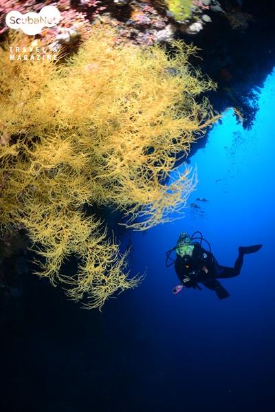 모델상 공지우(사진/정상근)Nikon D800, 연산호와 부채산호가 있는 풍경과 다이버